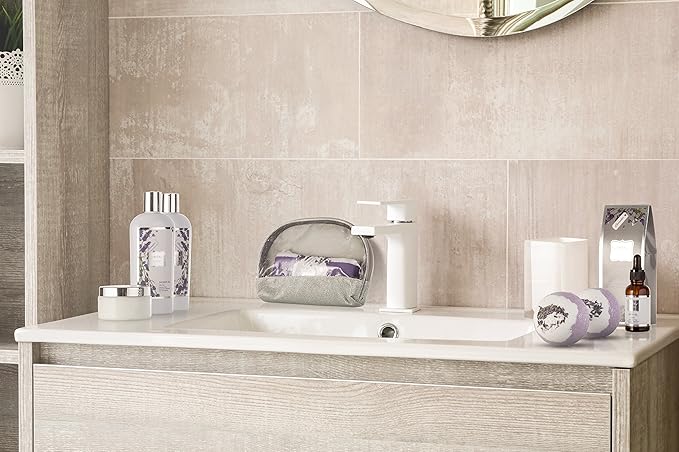 Bath Gift Basket Set for Women: Relaxing at Home Spa Kit Scented - Lavender and Jasmine with Large Bath Bombs, Salts, Shower Gel, Body Butter Lotion, Bath Oil, Bubble Bath, Loofah & More