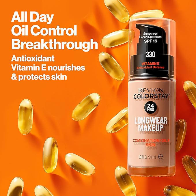 Revlon Liquid Foundation, ColorStay Face Makeup for Combination & Oily Skin, SPF 15, Medium-Full Coverage with Matte Finish, Butterscotch (315), 1.0 oz
