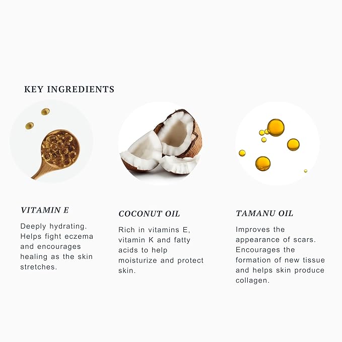 - Organic Argan and Coconut Oil to naturally hydrate your growing bump