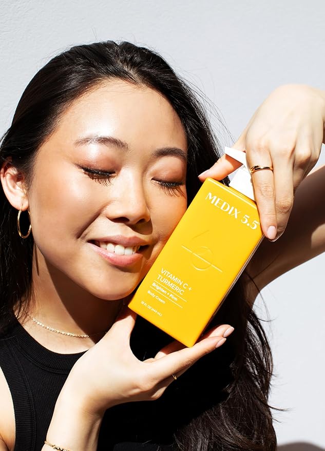 - ILLUMINATED SKIN β This Medix 5.5 Vitamin C Body Cream infused with Turmeric helps soften the look of aging skin and uneven looking skin tone. This rich, velvety formula provides rich hydration, keeping skin visibly smooth, soft, & refreshed without a greasy finish. Skin feels hydrated, nourished and visibly radiant throughout the day. This lightly scented Vitamin C body cream revives the look of uneven skin, the look of dark spots, rough looking skin, crepey skin, wrinkles, & more.