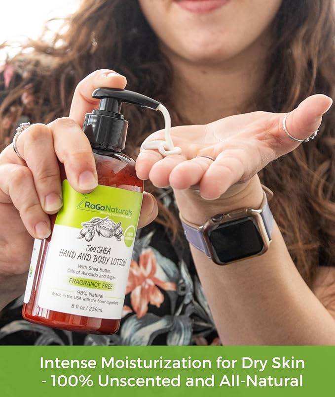 RaGaNaturals Natural Unscented Body Lotion for Dry Skin with Shea Butter and Vitamin E & B5 - Hydrating, Nourishing, Fragrance Free Hand Moisturizer With Organic Essence - For Women, Men, Kids - 8 Oz