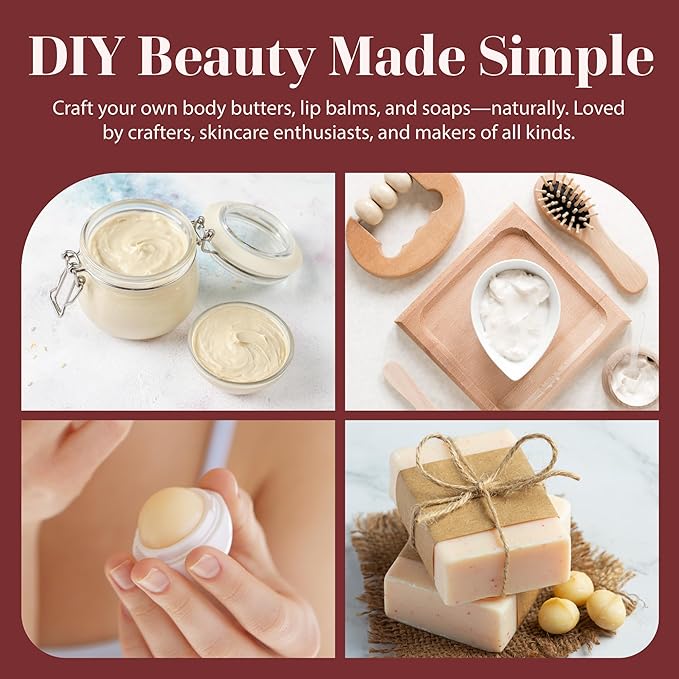 - PERFECT FOR DIY SKINCARE: Ideal for making lotion bars, body butters, whipped shea butter blends, lip balms, soaps, and belly creams. Melts smoothly and mixes easily with other butters and oils like mango, shea, or coconut.
