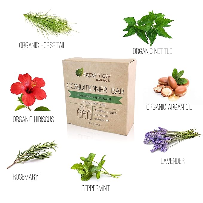 Aspen Kay Naturals Conditioner Bar, Made With Natural & Organic Ingredients, All Hair Types including frizzy hair, 2.3 Ounce Bar. (Rosemary & Peppermint)