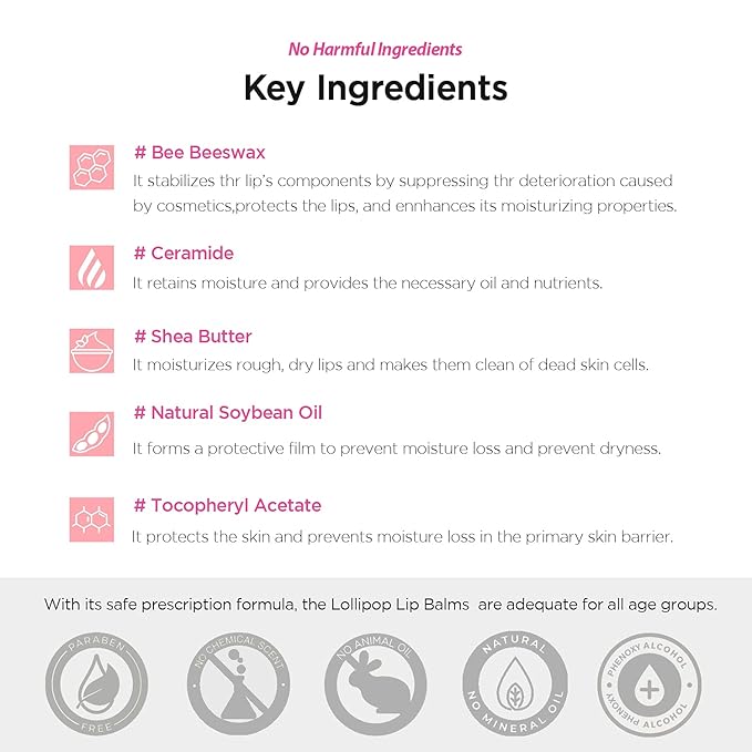 - Moisturize your lips with Beeswax: The Lollipop Korean Lip Balms are formulated with Beeswax, known for its excellent hydrating properties that lock moisture in your lips; as itβs mixed with Soybean Oil, its moisturizing impact is even more effective. The benefits of Beeswax extend to UV ray protection. A truly moisturizing and protective Korean lip balm.