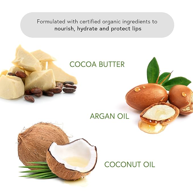 - Ultra-Nourishing & Hydrating: Enriched with organic cocoa butter, argan oil, and coconut oil to keep your lips soft, smooth, and moisturized
