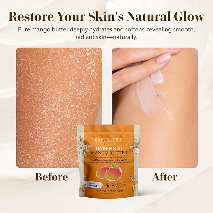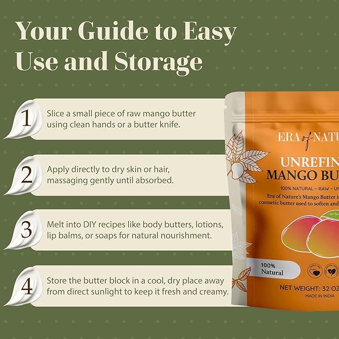 - PREMIUM RAW MANGO BODY BUTTER: Crafted from pure, unrefined mango seeds, this organic unrefined mango butter retains its thick, creamy texture. Unlike melted alternatives, our raw butter is sliced to preserve nutrients—perfect for your body butter making kit or lotion bar creations.