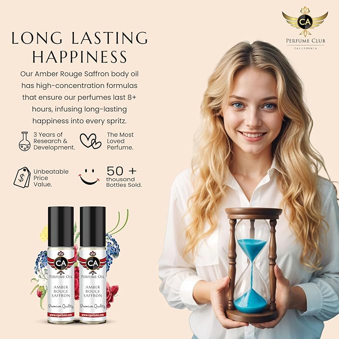 CA Perfume Amber Rouge Saffron Fragrance Body Oil For Women & Men Roll On 0.33fl oz / 10ml