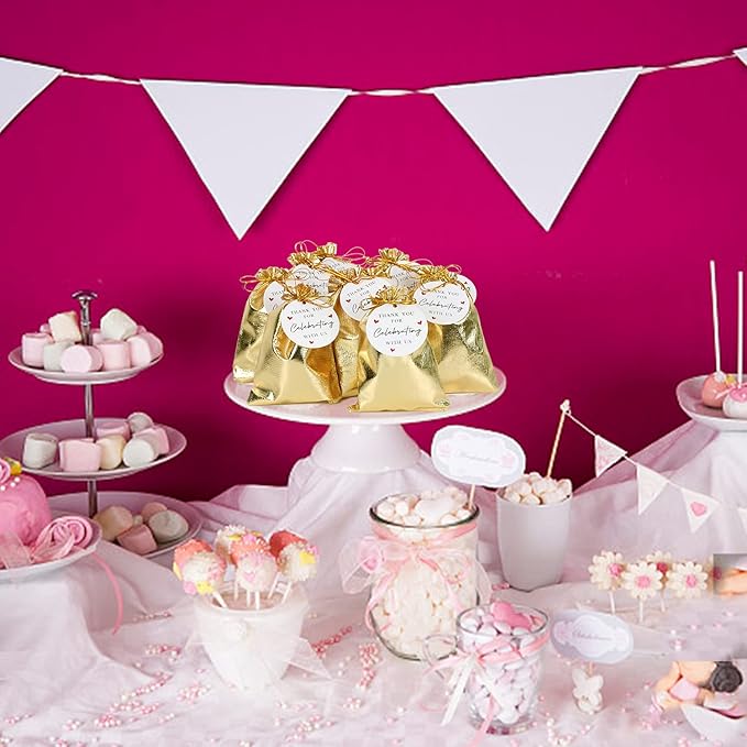 - Package Includes: 100 x organza gift bags,100 x thank you tags.