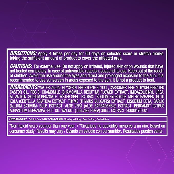 - [ CLINICALLY PROVEN RESULTS IN 2 WEEKS ]: Experience visible improvement in surgical scars, acne scars, and stretch marks in as little as 2 weeks. Results may vary. Follow product directions
