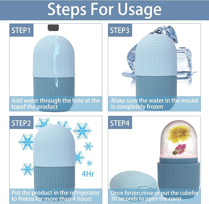 - ๐๐ผ EASY TO USE: Fill the ice roller massager mold with water. Freeze in refrigerator for more than 4 hours,when using it apply the ice to your skin in 30 second intervals in circular motions. For optimal results, It is recommended to use 1 or 2 times a day
