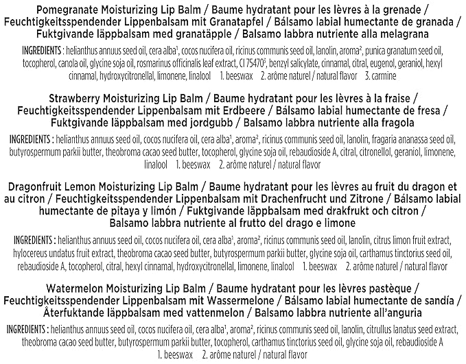 - MOISTURIZING GIFT SET: Everything you need for naturally beautiful lips, Burt’s Bees Moisturizing Lip Balm comes in four flavors: Strawberry, Dragonfruit Lemon, Pomegranate and Watermelon