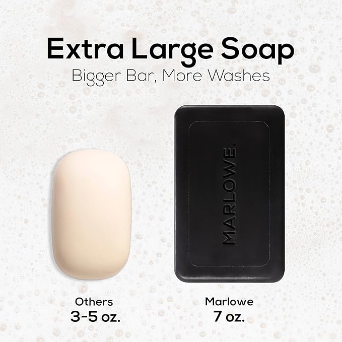 MARLOWE. No. 106 Charcoal Soap 7 oz (12 Bars) Body Bar Soap for Men, Cleansing, Purifying & Hydrating with Natural Extracts, Shea Butter, Olive Oil & Green Tea Extracts, Fresh Woodsy Scent