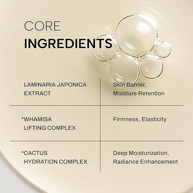 - INSTANT FIRMING & WRINKLE CARE : Whamisaโs fermented Cactus Hydration Complex and (-)-alpha-bisabolol activate within minutes, enhancing elasticity, refining the look of lines, and visibly tightening pores for a radiant, healthy complexion.