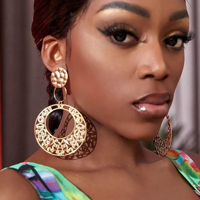 Boho Large Filigree Disc Dangle Earrings Stud Vintage Tribal Ethnic Hollow Carved Earrings Gold Geometric Floral Hoop Drop Earrings Statement Wedding Prom Earrings Jewelry for Women Girls