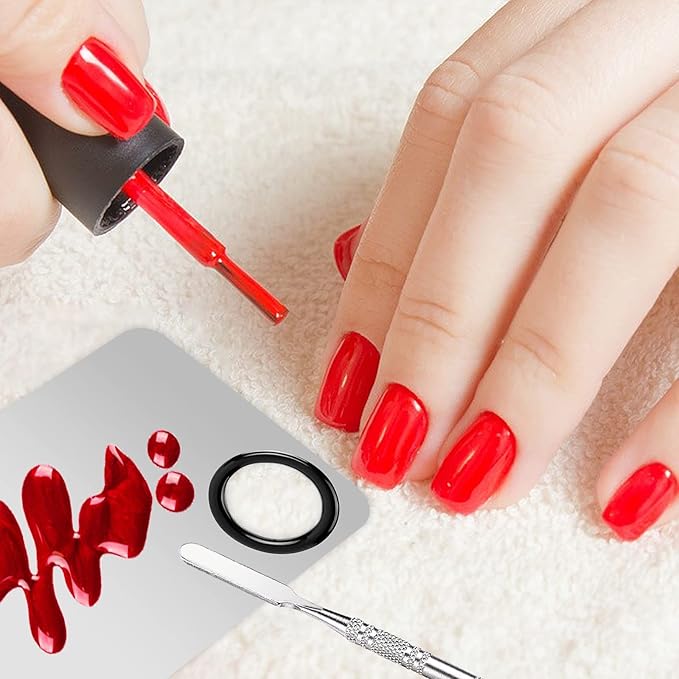 - 【Handy Design】: The nail art palette features a black pvc-coated finger holes to hold it tight and a double-end spatula to get the product out of the container