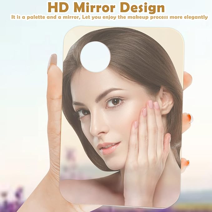 - 【Special Design】 There is a round hollow hole on the edge of this makeup mixing palette, which is easy to hold with your fingers when using it. This makeup foundation plate is designed with an HD mirror, which can be used as a mirror or a palette, providing a lot of convenience for your daily makeup.