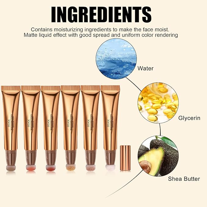 - 💋【New Liquid Contour & Highlighter & Blush Stick with Super Silky Formula】Easy, brand-new-to-market cushion applicator to dispense product evenly makes creating gorgeous, sculpted cheekbones easy. The lightweight, blendable formula can be applied to suit your desired level of coverage. Help covers blemishes on your skin without clogging pores, do not leaving lines and creases, The silky formula is easy to blend and buildable for a natural or dramatic look, your makeup lasts from all day.