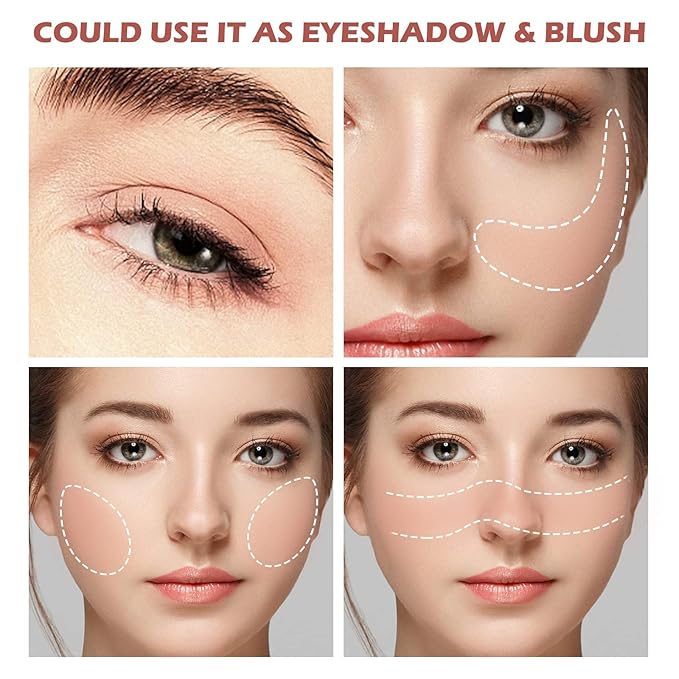 - Easy to Apply: You can apply the makeup by pressing it on with a puff, or use the blush brush in multiple back and forth motions brushing or circling on the cheeks for an instant soft-focus effect.(Could use it as eyeshadow and blush)
