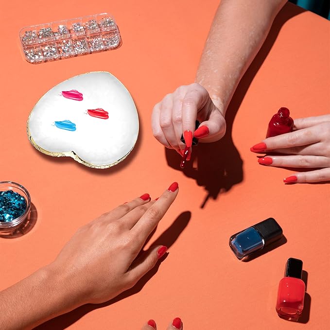 - 【Heart Shape】The nail palette is designed in a heart shape, which looks small and cute, and the edge is designed with gold binding, exquisite and practical, you can mix the colors and pigments you want at will