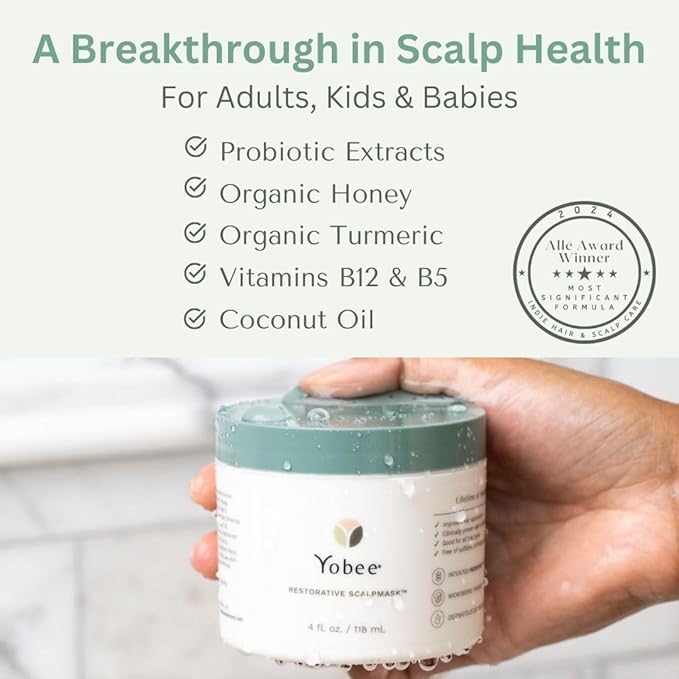 Yobee Restorative Scalp Mask - Dry Scalp Treatment Hair Mask - Probiotic Extracts, Organic Honey, Turmeric, Vitamin B12 - Natural Dry, Itchy, Sensitive Scalp and Dandruff Relief - for Adults, 4 fl oz