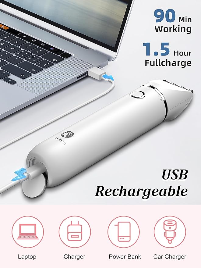- 【Rechargeable & Portable】 This bikini trimmer comes with a convenient USB charging cable, providing quick and easy charging. With just 1.5 hours of charging time, enjoy up to 90 minutes of cordless use. The included extra carrying bag makes it perfect for travel. Hygiene, and convenience on the go.