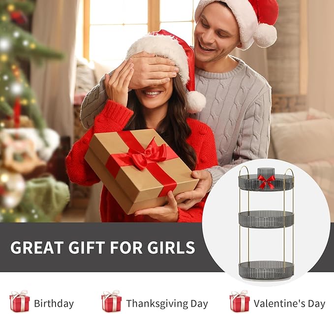 - 【360° Rotation】: The large-capacity makeup organizer allows you to store your cosmetics and skincare products in a clean and orderly space, 360° smooth rotation allows you to quickly find what you need, It's very convenient. The raised edges prevent cosmetics from falling off during rotation.