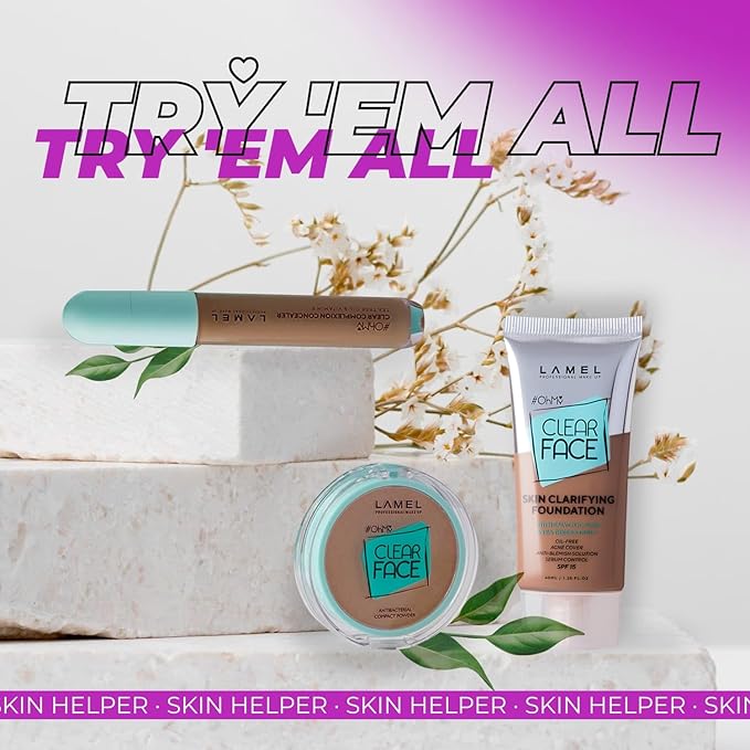LAMEL OhMy Clear Face Full Coverage Foundation - Acne Coverage - Salicylic Acid & Tea Tree Extract - Dewy & Flawless Finish - Sensitive Skin Care - Organic & Oil-Free - 410, 1.35 fl.oz