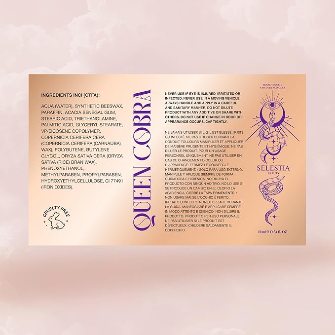 - Luxurious and Captivating Packaging: The packaging design of the Royal Volume and Curl Mascara "Queen Cobra" is truly outstanding. Inspired by the elegance and allure of a gold snake, the volumizing mascara comes in a sleek and eye-catching container.
