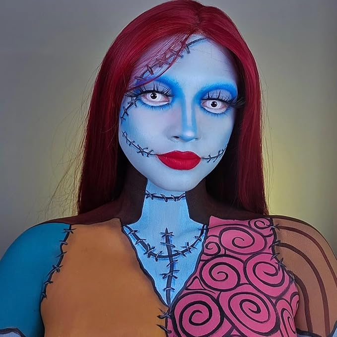 - ✔Pro Halloween SFX Cosplay Makeup Face Paint --- 1.06Oz for our ginger face paint,meet your need for sally costume face painting or other Halloween cosplay makeup with full coverage.It infused with waterproof and sweatproof formula,don't come off with sweat and rain.The nice consistency makes it blend into the skin easily with a brush, sponge or finger.It may need some time to dry.To avoid smearing when put on,we advise use the setting powder or setting spray before applying the face body paint