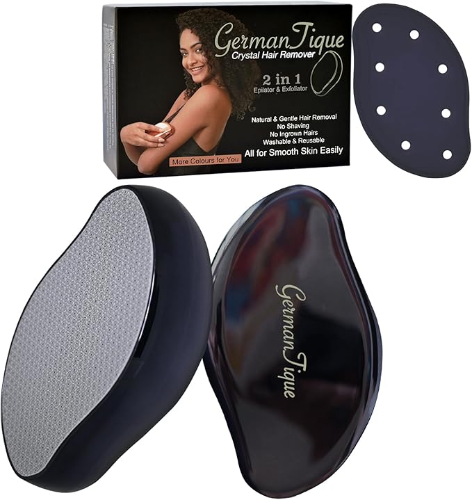 - AWAY FROM IRRITATION AND SLOW HAIR REGROWTH:Germantique crystal hair removal tool is a new generation of hair removal epilator. It can remove the hair without black dots easily and exfoliate dry skin cells with gentle glide which leaves skin soft and silky smooth .The hair can be evenly grabbed and neatly removed from the hair root when rubbing along the innovative circular patterns.No irritation,no fuss. It helps slow down and thinner hair regrowth after a regular use every two weeks