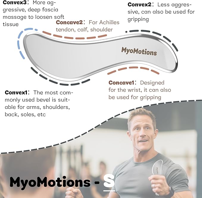 - Full Body Massagers- 3 different muscle scraper tools that allow precise treatments for different sized individuals. Perfect for your Thigh, calf, Achilles tendon, latissimus dorsi, wrist, neck, shoulder, plantar, etc