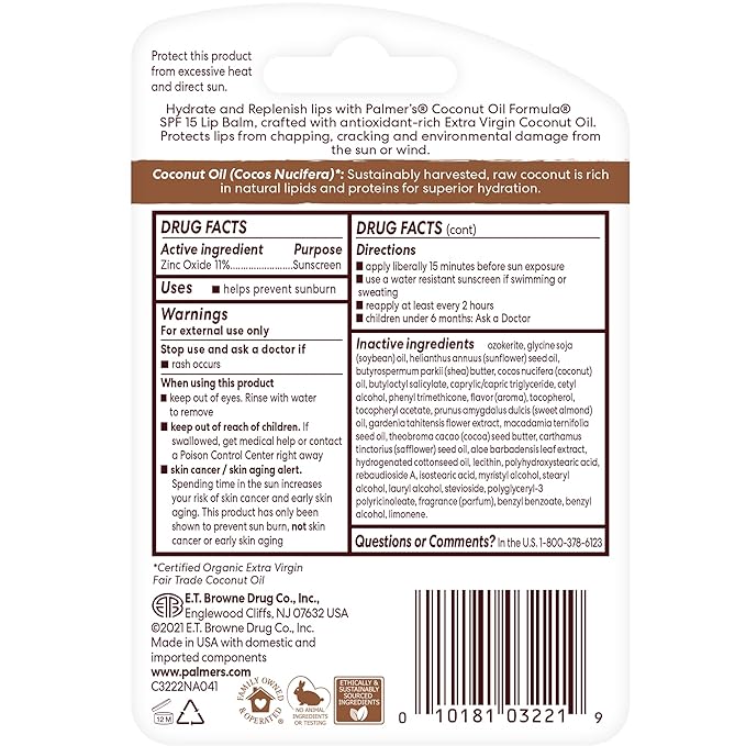 - Product 2: Lip Balm: This decadently creamy coconut lip balm with SPF 15 keeps lips hydrated all day long and protects against chapping, cracking and environmental damage from the sun or wind