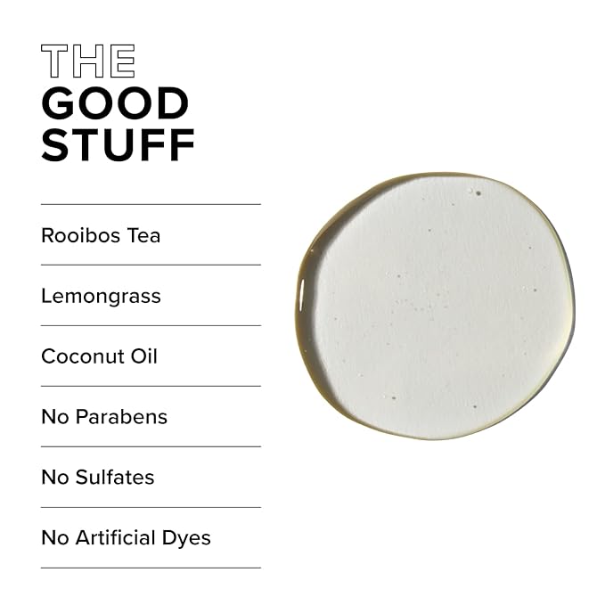 - Lemongrass Tea Shampoo - This hard-working mens shampoo uses rooibos tea extract and coconut oil to help remove product build-up and debris. Our proudly sulfate free shampoo is also formulated with a custom spirit blend to cleanse your hair with natural ingredients of hops extract and juniper berry.