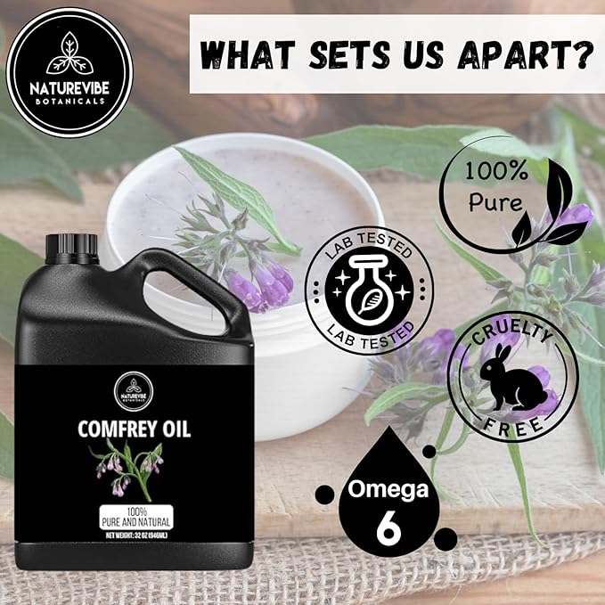 - ✅Comfrey Oil 32 Ounces by Naturevibe Botanicals 100% Pure & Natural Cold Pressed | Moisturizing & Nourishing Oil for Face, Hands, and Body | DIY Ingredient for Skincare (946 ml)
