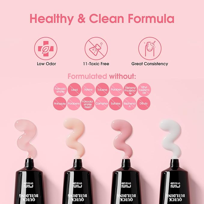 - Warm Tips: It is common for gels to be sticky. so dipping you brush into the gel solution will help you push the gel more smoothly. Or you can seal the gel tube and soak it in warm water before use, which will make it more fluid and help you squeeze out the poly nai gel more smoothly. Both sides of the nail need LED light or UV light to cure for about 120s to completely dry. The lighting time needed depends on the thickness of the gel.It is recommended to read the instruction manual in detail!