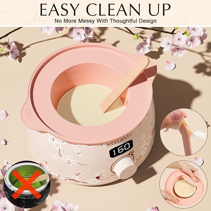 - 10 MINUTES TO HEAT - Uneven melting leads to brittle wax? Not anymore! KOTAMU wax machine features innovative PTC technology and an "Automatic Keep Warm" function, ensuring your wax beans always stays ready for serving! No wait, just smooth application