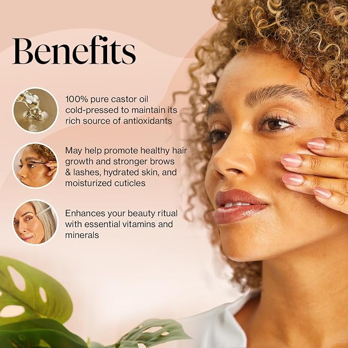 - PACKED WITH ESSENTIAL NUTRIENTS FOR HAIR & SKIN CARE: Rich in vitamins, minerals, and fatty acids, castor oil is renowned for reducing inflammation, hydrating, and boosting hair and skin vitality. Regular use nourishes, strengthens, and enhances the appearance of hair, lashes, brows, and skin for a healthier, radiant look.