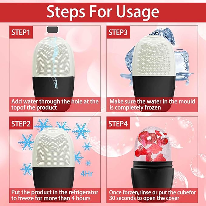 - โ๏ธ HIGH-QUALITY: This ice roller for face is made of high-quality silicone material, which is repeatable and durable. BPA-free, Small and light design, ergonomic hand design is easy to grasp, ice roller head can slide on the skin,It is also easy to carry