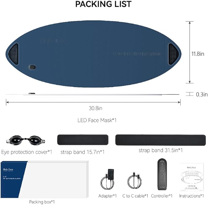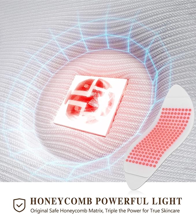 - Engineered for Safety Protection: The face light therapy device features a honeycomb design that keeps bulbs from direct skin contact to prevent burns. It includes a sweat-proof, short-circuit-resistant FPC board for durability. Comes with protective goggles—please wear during use to reduce light exposure discomfort