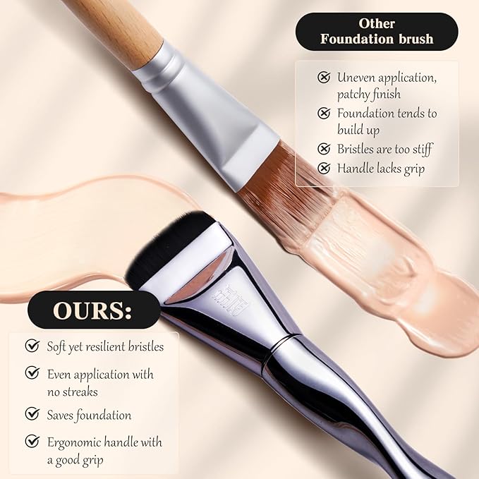 - 【With Foundation Brush】The Flat Foundation Brush can better spread the liquid foundation on the face and better cover every area of the face, and then use the powder puff to pat the liquid foundation. The combination of the two makes the base makeup more flawless and creates a perfect makeup