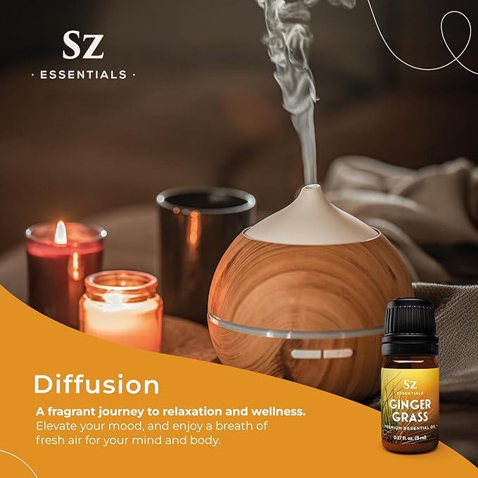 – Ginger Grass Essential Oil – 100% Pure & Undiluted (Cymbopogon martinii VAR. Sofia)– Fresh Citrusy Earthy Aroma – Aromatherapy, Perfumery, Skin Care – Therapeutic Grade - 1/6 oz. 5 mL