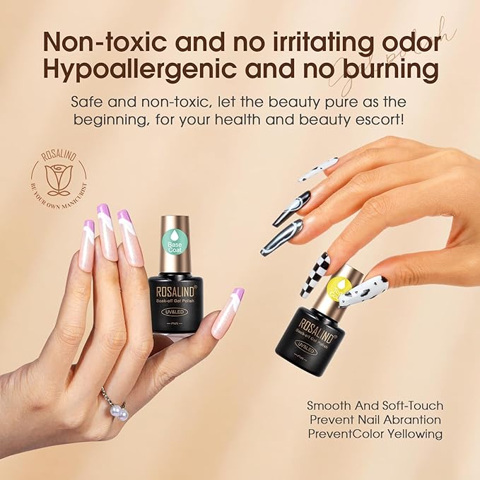 - WIDE COMPATIBILITY: ROSALIND Nail Dehydrator Nail Primer and Top & Base Coats Set is suitable for use with all types of gel nails, powder nails, nail tips, cuticle oil, acrylic nail supplies, U V gel systems, poly gel systems, liquid systems, as well as any artificial nail art
