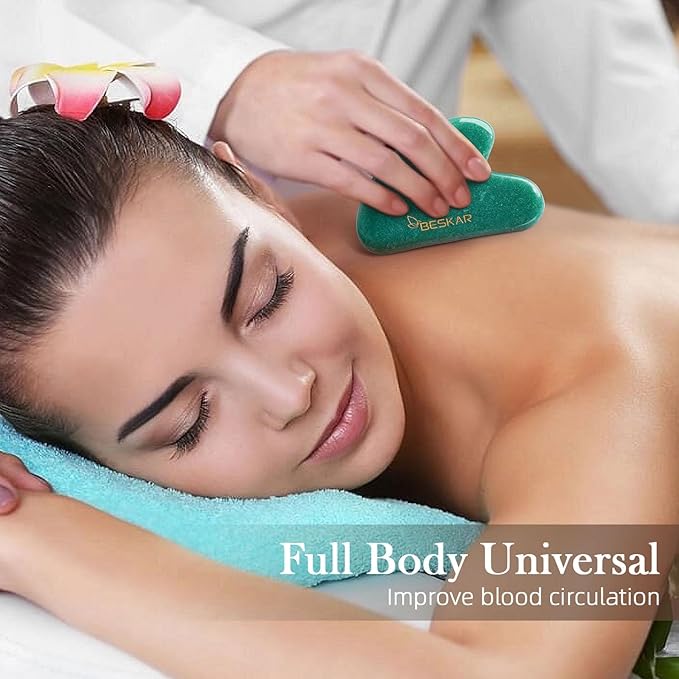 BESKAR Gua Sha Facial Tools, Natural Jade Stone Guasha Massager for Jawline Sculpting, Tighten Face Skin and Reduce Wrinkles, Face Eyes Body Neck Massage Tool, Skin Care Gift