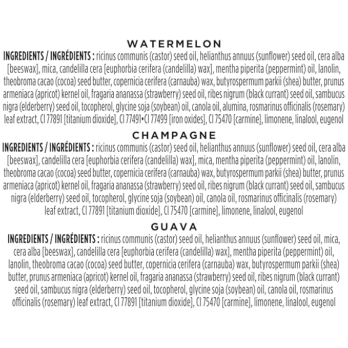 - LIP SHIMMER: Three 0.09 oz. tubes of Burt's Bees Lip Shimmer in Watermelon, Champagne and Guava to help you achieve soft, bright and shimmery lips