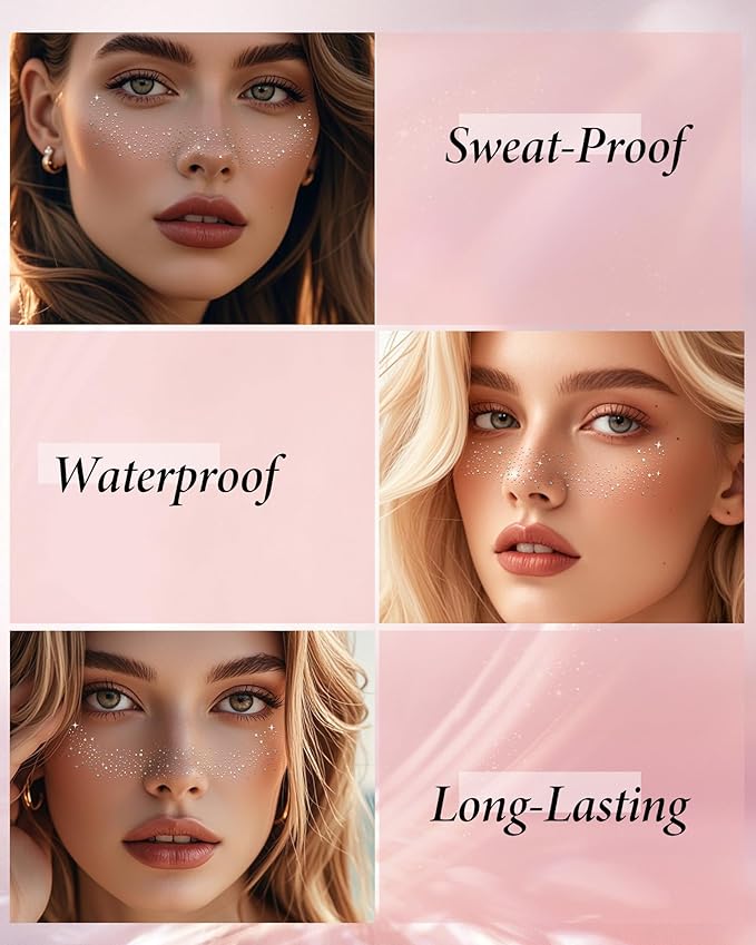 - Long-Lasting: The glitter freckles face tattoo adheres well to the skin, ensuring your shimmery look stays put all day or night.