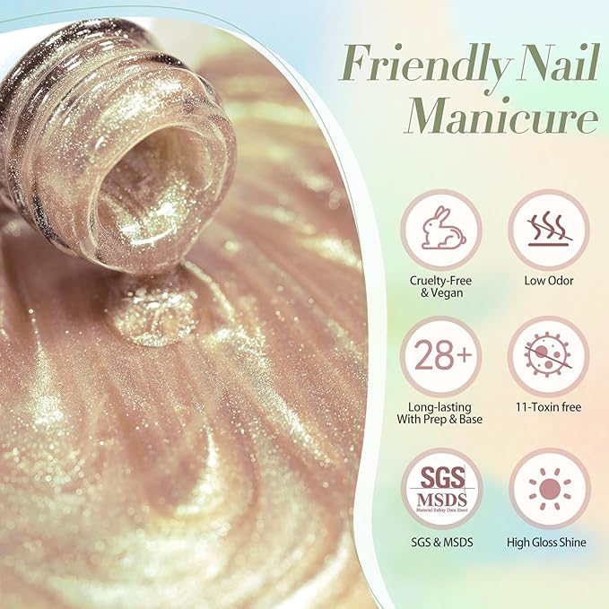 - HEALTHY GEL POLISH :Healthy ingredient with low odor! No harsh ingredients or adhesives that lead to damaged nails. Only used for nail and non-direct contact with mouth,eyes. Wash immediately if contact occurs. Keep the products away from the pregnant and the kids.