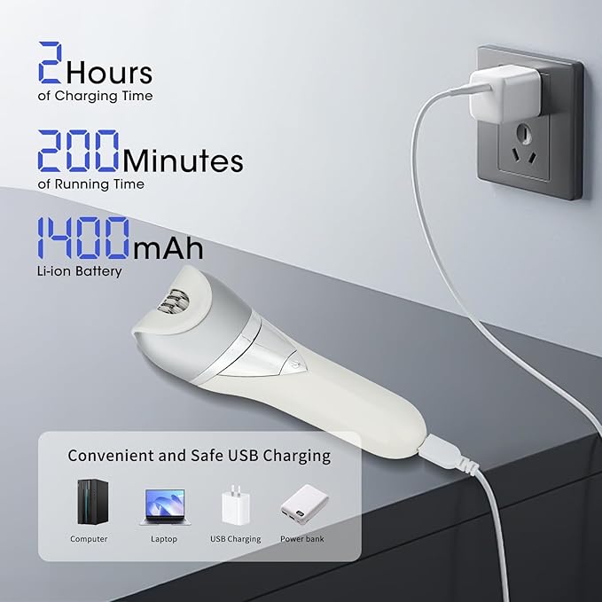 - FASTER CHARGING, LONGER RUNNING TIME - USB Quick Charging, fast 1.5 hours charging allows 100 minutes shaving. Built-in rechargeable Lithium Battery has super long lifespan, no need to charge frequently. Whatβs more, the unique led display can show you the rest power, making it always ready for use