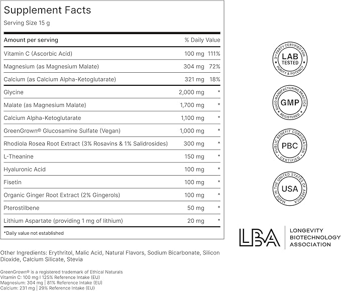 - Primary Supplement Type : Calcium Alpha-Ketoglutarate, Cognition, Longevity, NAD+, Skin