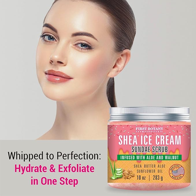 - šØ Luscious Ice Cream Texture Whipped with rich Butyrospermum Parkii (Shea Butter) for a creamy, dessert-like feel, this scrub delivers a decadent exfoliating experience reminiscent of a sweet sundae treat.