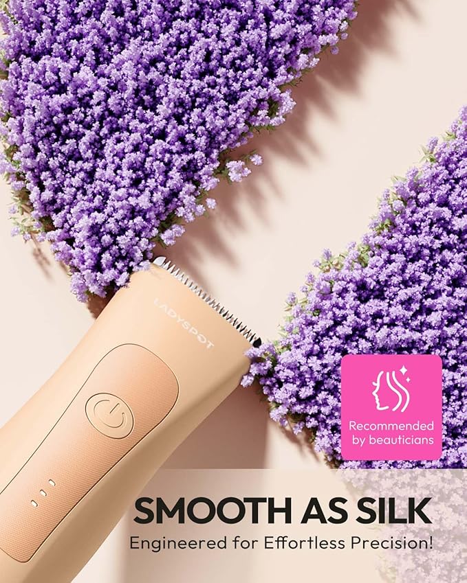 - ✨ LADYSPOT Skin-Protective TECH: Help reduce nicks and cuts. This women trimmer features advanced Aerospace-grade hypoallergenic ceramic blades that glide effortlessly, ensuring a silky-smooth finish without any irritation.